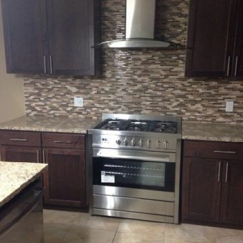 I can also install range hoods and over the range microwaves after backsplash is installed. I have the tools required to drill through tough porcelain and delicate glass tiles.
